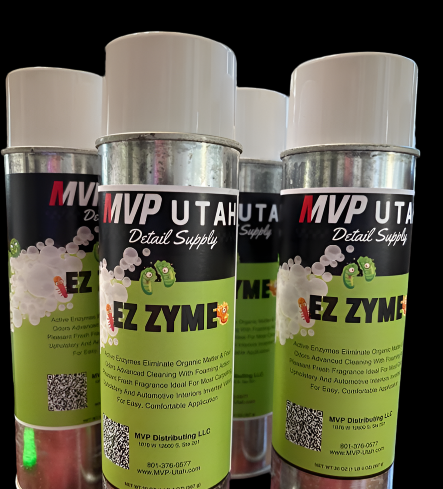 EZ Zyme is a professional enzyme-based carpet and upholstery cleaner designed for auto detailing. Sold in a case of 12 aerosol cans, it targets and dissolves organic stains like food, grease, urine, blood, vomit, and mildew odors at the source—not just masking them. Perfect for deep-cleaning fabric seats, floor mats, and vehicle carpets.